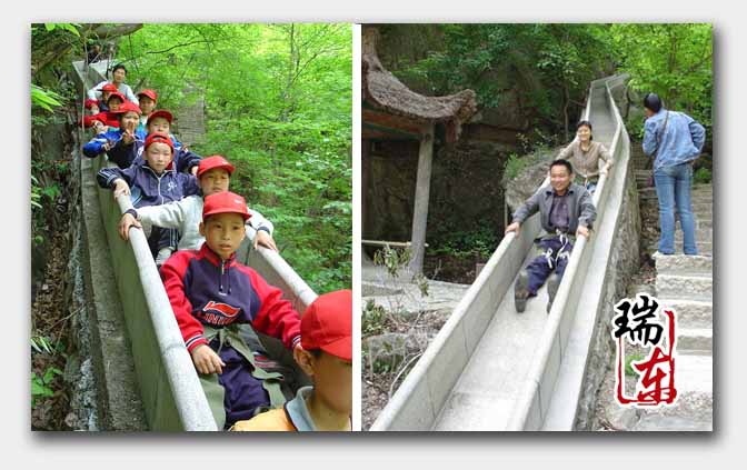 滑道是一種無(wú)載人工具滑道,靠重力自然下滑,速度由游客自己控制,安全好玩!是自然景區(qū)中一種新型的娛樂(lè)與代步為一體的參與性?shī)蕵?lè)設(shè)施!它是以?huà)伖獾幕◢弾r石為主要材料,依山體坡度修建而成的巨型凹槽。既是老少皆宜的娛樂(lè)設(shè)施,又是充滿(mǎn)童趣的代步工具。